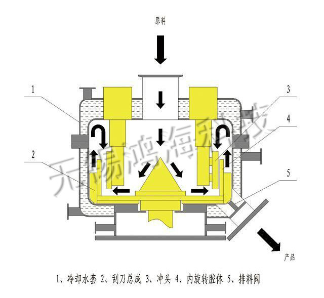 此設(shè)備主要是針對電池行業(yè)設(shè)備,上進(jìn)料口(負(fù)極材料、導(dǎo)電劑、粘接劑、電解質(zhì))經(jīng)機(jī)械融合及高精密混合處理,構(gòu)成不同材料成分的分布,提高產(chǎn)品材料的利用率,構(gòu)成不同材料的成分顆粒之間的復(fù)合化,降低產(chǎn)品的BET比面積,讓產(chǎn)品顆粒以高密度填充;將納米級粉末包覆在微米級的顆粒上,從而改進(jìn)粉體的許多物理,化學(xué)特性。機(jī)械融合設(shè)備就是基于此原理開發(fā)的。物料在轉(zhuǎn)子中高速旋轉(zhuǎn),在離心力的作用下緊貼器壁,在轉(zhuǎn)子和定子擠壓頭之間高速穿過。在這個(gè)瞬間,物料同時(shí)受到擠壓力和剪切力的作用,由于高速旋轉(zhuǎn),物料在轉(zhuǎn)子和定子之間循環(huán)往復(fù),不斷地受到擠壓力和剪切力的作用,在摩擦力的作用下顆粒表面達(dá)到一種機(jī)械熔融狀態(tài),從而將納米級的超細(xì)粉末包覆在微米級的顆粒上。